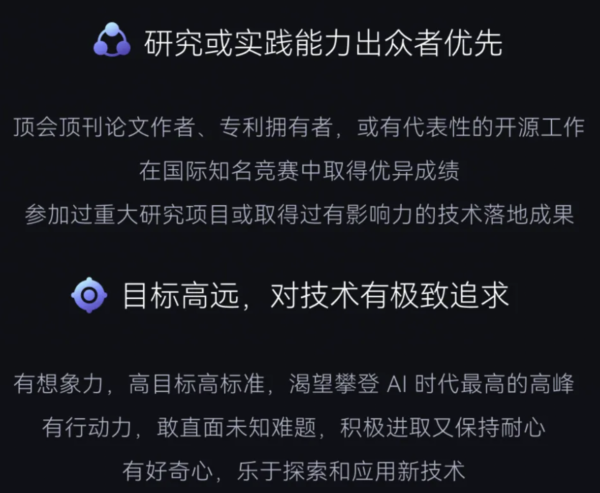 凡是顶会顶刊论文作者、参加过重大研究项目或取得过有影响力的技术落地成果的人才会被优先选用。